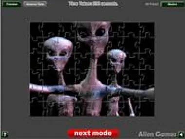 Alien Contact Jigsaw is a brand new free online alien jigsaw game. The Aliens are here and they are trying to make a contact with us. But a man from the Earth has taken a picture of them and this picture you have to solve and to let the world see it. Solve this puzzle of the three funny aliens and prove the world that aliens rely exists. To play this game you have to drag the pieces into place using nothing else but your precious mouse. Once you have finished one level you can play the next level. Enjoy solving this fun and interesting alien puzzle. Have fun!