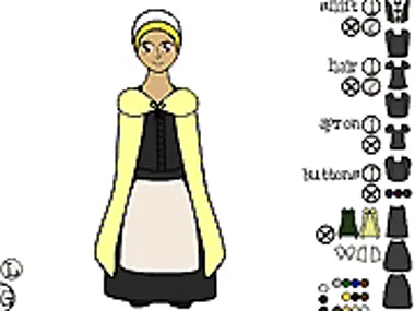 Dress this pilgrim in a multi layered, decent and demure outfit with a nice hair covering and dark fabrics to get her ready for a day in the new world, America.