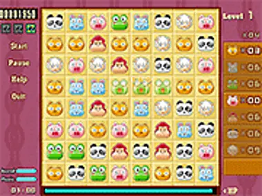 Any pet can exchange position with the next one.You can get scores when three(or more than three)same pets are in one line.