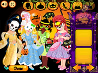 The baby princesses are really excited for Halloween. They love to go trick-or-treating and this year they want to have the most amazing costumes, so everyone in the kingdom will give them lots of candy. Help these little girls make some hard fashion choices in one of the most adorable dress up games. Combine the clothes and accessories in their wardrobe for a spooky look! When you're done, choose the perfect background and take a lovely picture with the girls!