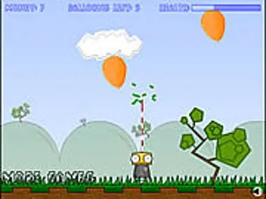 Buy upgrades for your robot and pop all the 6 type of balloons before those reach the right side through the levels. Can you buy all upgrades?