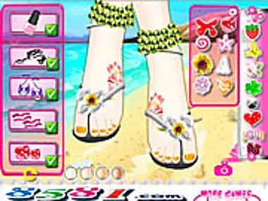 Cute girls love to walk around the seaside to appreciate the beautiful blue sea. It is time to manicure toenails and show beautiful feet. Colorful toenail polish is necessary. Many beautiful patterns can be chosen. Stylish shoes can show your charm. They are so attractive. Come to show your beautiful feet!