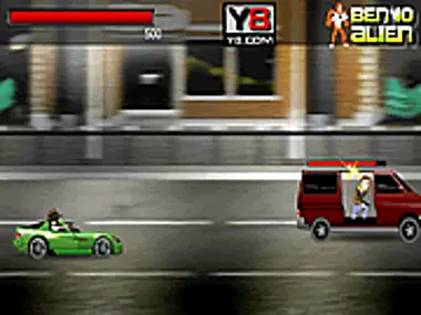 Your role is to help Ben10 to drive the car, avoid obstacles on the road and shoot the enemies using arrow keys and mouse. The enemies also try to ram and shoot you, so be quick! Vans with different colors have different strengths; black vans are the strongest, while blue ones are the weakest. Remember not to let the vehicle pieces land on your car. The game is over when time is up, or you run out of energy.