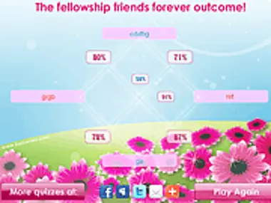 The greatest and sweetest online best friends forever(BFF) fellowship test. Enter the names of you and your friends and find out if you are best friends forever. Try it out on all your friends.