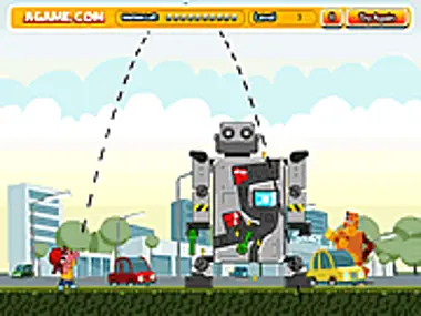 Sling marbles at the robots' energy cores to take them down. Collect coins and get rich along the way!