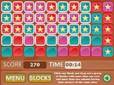 Analyze and think the possible group of blocks that can be group together. The edges must be the same colors and collect all the stars.