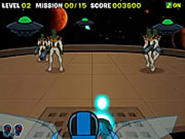Alien's attacking Blue Beetle's turf. Help him by zapping aliens and sending them back to their home planet.