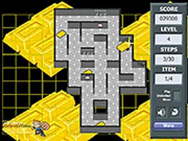 As a thief, collect all the gold bars and return to the hole within a limited steps.