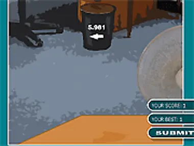 Shoot the paper ball into the garbage. Watch out for that "wind" direction.