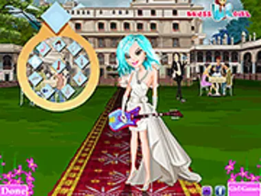 This cool guitarist is going to be a bride today. Select a wedding outfit for her.