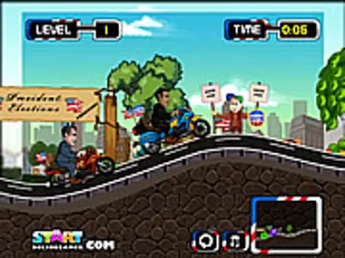 Now these politicians are on the race to win the election. Choose your favourite politician you would most like to race with, Get on the bike and finish every level in first place.