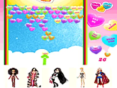 Use the cupid arrow to fire the candy hearts. When you make a line of 3 hearts they will disappear.