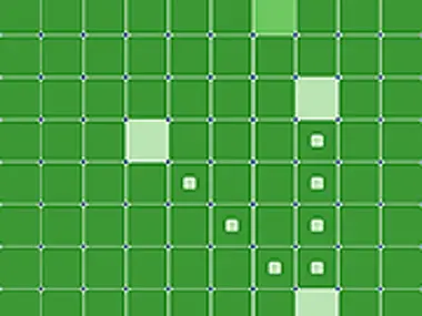 In this game you are challenged to link a number of green squares in a chain using only perfectly vertical, perfectly horizontal, or perfect 45 degree diagonal lines, all without repeating the same block twice.