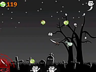 Save the three people being attacked by zombies! In order to save them, cut the zombie heads that fly in the air, and shoot the ghosts! If you don’t, the zombies will bite the men below them, and the ghosts will throw a bomb at them, so be careful! Cut the zombies into as many pieces as you can to in order to get extra points for combos. You have three lives until the round is over. After each round, upgrade your weapon at the store. The more points you get, the better weapons you can buy!