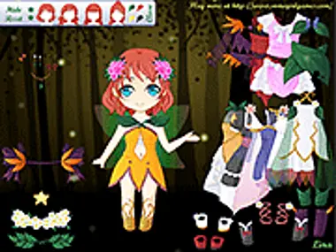 Dress up this adorable fairy girl in the outfit that you like best. Add accessories and shoes. Click the tab at the top that says "Open" and you can change her hair style and color as well as switch between night and day, reset the game and hide the items. Drag the little star over her palm and watch it magically move.