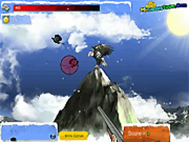 In this game your goal is to defend ill eagle from attacks of ravens. You have 200 seconds to save eagle. For each killed raven you receive 15 points. Attention! Don't kill eagle with your gun.