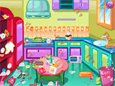 Help Ellie to clean up all the mess. Throw the trash and place all the items in their designated places.