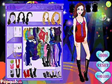 With the bright and glittery sparking, the fashion model will begin her dancing on the stage. Open her wardrobe and you will see so many bright fashion clothes in it. Which one to choose? Try on now!