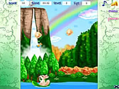 Save the fox on the river. Shoot all the rocks before they hit the water and let the water rise.You control the fox with the mouse and shoot with the mouse button.
