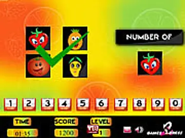 Fruit tally is a type mind game created by games2dress. In this game some fruits are displayed in boxes. You want tally how many numbers of fruits are in selected type and input your answer in given below buttons. For enter correct answer you will get 200 and wrong answer will get ( 25). Have a fun