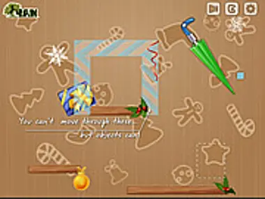 Put the Christmas gifts to their places! Use whatever is at hand – books, baseball bats, golf clubs, boxes, magical Christmas hats and many other things!