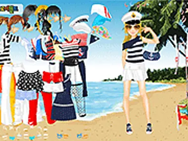 This girl has her own original fashion style. She is crazy about ships and sailing the seas. That's why she likes to wear sailor style clothes and combine them with trendy items. Dress her up in her original stile! You'll she how cute she looks!
