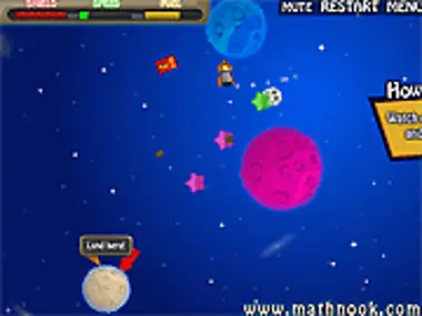 Give your bear enough thrust to avoid moons and planets as you grab stars. Land on correct planet.