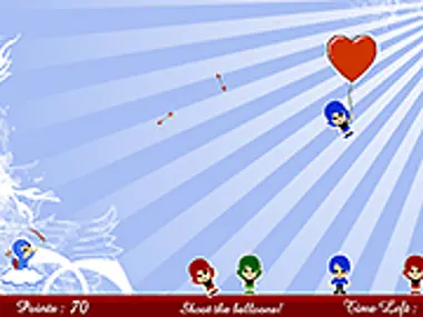 Shoot the balloons to make the little people drop to the floor. People will match up with other people of the same colour and fall in love!