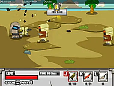 Blast enemy robots as you earn to upgrade and buy ammo. Make sure you're properly equipped.