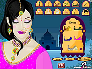 This beautiful Indian girl is going to get married today. She wants to have a wonderful traditional wedding and she would like to be the most beautiful Indian bride ever. For that he needs someones. Check out all those Indian traditional bridal clothes and accessories and dress her up with the outfit you like best of all.