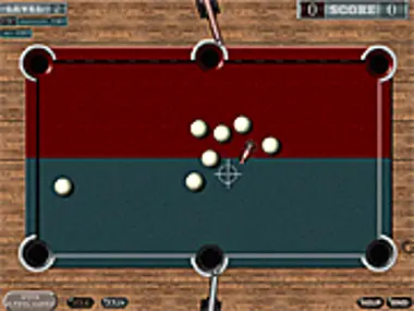 Shooting billiard: Shoot all balls to the opponent's pockets, and defend yours.