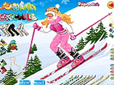 Help this adventurous woman dress up for her ski activity.