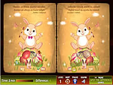 Let this little book brings to you the beauty of Easter. Look into the beautiful drawings and try to find the differences. For each level you have 3 minutes, and in case you run out of time, you can play again starting from the previous level.