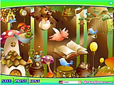 Rearrange the fanciful items to form the ideal magical forest. Hit Hint for a sneak peek of what it should look like.