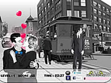 Marilyn Monroe has to kiss her lover without being noticed by others. Help her to do so and earn score.