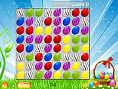Match 3 Easter Egg, is a free match-three easter style video game based on eggs. Your goal is to get as many points in 90 seconds as possible. To achieve this, you swap eggs of the same color to form horizontal or vertical matching sets. The more you can connect this way, the higher your score will be. Furthermore, there are special rewards if you connect more then 3 easter eggs. Click two horizontal or vertical adjacent eggs with the left mouse button to swap their position - or just use drag&drop. If you can connect/match more then 3 eggs you will get a special easter-egg-bomb. The effect of this easter-egg-bomb varies. With 4 horizontal eggs, it will clear all 9 jewels around itself, with 5 horizontal stones, it will clear the whole row/column, after activation. To activate a egg bomb you need to connect it to at least two stones of the same color. Play and have fun!