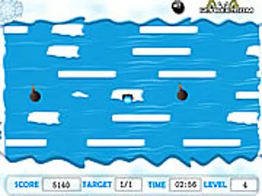 The Penguin has to go home by crossing the river without falling down. Help him reach home safely, within the given time, carefully avoiding any obstacles on the way. In the last three levels, you have to help two Penguins. Do not let the Penguin fall to avoid playing the same level again. Complete the level and move on to the next levels.