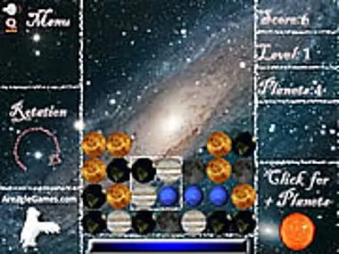 Fun and addicting match 3 puzzle, with a space based theme and web rankings! Try to beat the rest of the world with a Planetary Twist!!Control the cursor with the mouse and active it pressing the left mouse button. When active the cursor will spin the planets inside in the direction showed in the screen. Make combinations in rows of columns of 3 or more of the same planets to destroy them. If one of the planets reaches the top of the screen, the game is over!