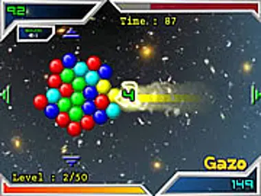 Drive the spaceship and visit the powerhouses to load the ship with a colour to blow up a group of balls of the same colour.