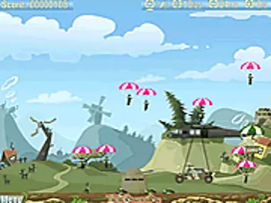 Use guns to shoot down troopers, choppers and armored vehicles. Use grenades to kill landed soldiers. Four soldiers from one side will bomb the gun.