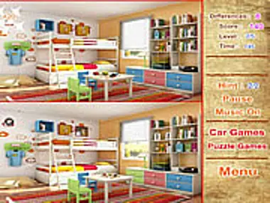 Magic spot difference games with 5 levels. Spot 7 differences between the two pictures of the beautiful rooms.