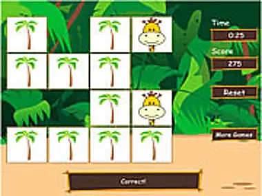 Turn the cards to find matching pairs of safari animals.