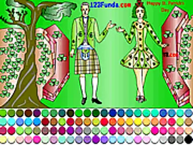 Saint Patrick's Day celebration parade Coloring. Pick beautiful colors from the colors palette and color the Saint Patrick's Day flowers ,A beautiful girl and her boy friend with their traditional costumes and help them to get ready to participate in Saint Patrick's Day parade . Happy Saint Patrick's Day !!