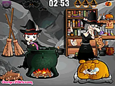 Add a pink and a purple potion, mix, mix and BOOM, the old and angry witch is not herself any more! How much can you practice dangerous spells in the cauldron? Hold your mouse when the old witch deals with another problem! Release not to be caught!