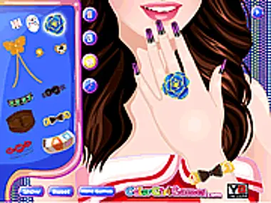 Selena Gomez always knows the latest nail trend! Tonight she is attending a fashion party. Help her design nails. Don't forget to pick a beautiful dress to match her manicure!