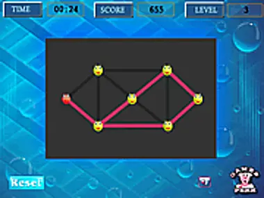 Complete the shapes by drawing lines .Click on one of the smiley and draw line from one smiley point to another. Your game come to an end if you make the shapes gets closed without completing the full shapes, which means that you cannot continue further. Complete each level within the time duration and move on to next.
