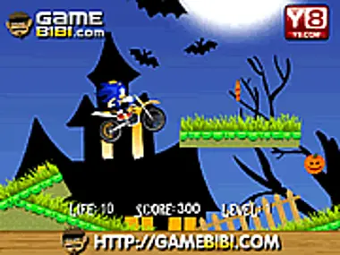 It's Halloween Night . Sonic is having fun on his motorbike. Help him to clear all the obstacles on his way. Collect points and bikes in the middle for more fun. Use arrow keys to play.
