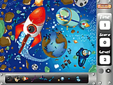 Click on all hidden items in each interstellar scene before time's up. Be careful—random clicks deduct points from your score. Who knew space was such a mess?!