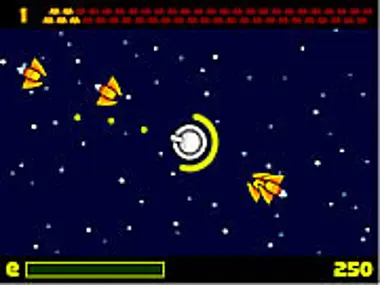 Shoot the incoming space ships, and turn your back to use your shield to protect you.