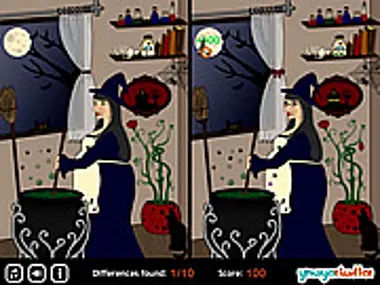 Trick or treat? Test your skills and play this fun and simple spot the difference game. Look closely at the pictures and find the differences. Halloween is a lot of fun! Find 10 differences between the two pictures to proceed to the next level. Difference found +100 points, wrong click -50 points.
